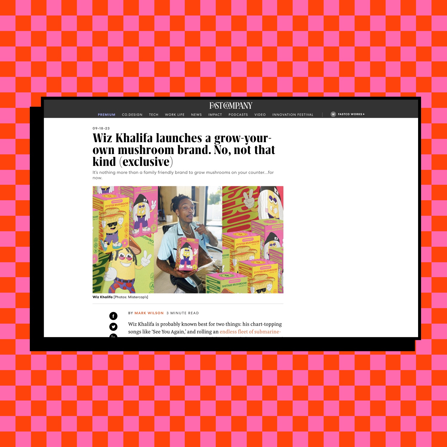 When you think Wiz Khalifa, the mind drifts to sick beats and, well, some smoky haze. But the platinum-record rapper is diving into new territory with Mistercap's home-grow mushroom kits. It's not the typical trip you'd associate with Wiz — this one is for the kitchen. The Khalifa Kush namesake trusted our team to cultivate a brand identity that was as vibrant and playful as his own persona. Drawing inspiration from the world of psychedelia and Wiz's iconic style, we cooked up a neon-tinged palette coupled with zany cartoon illustrations for each mushroom type. Cue the funky fungi vibes!