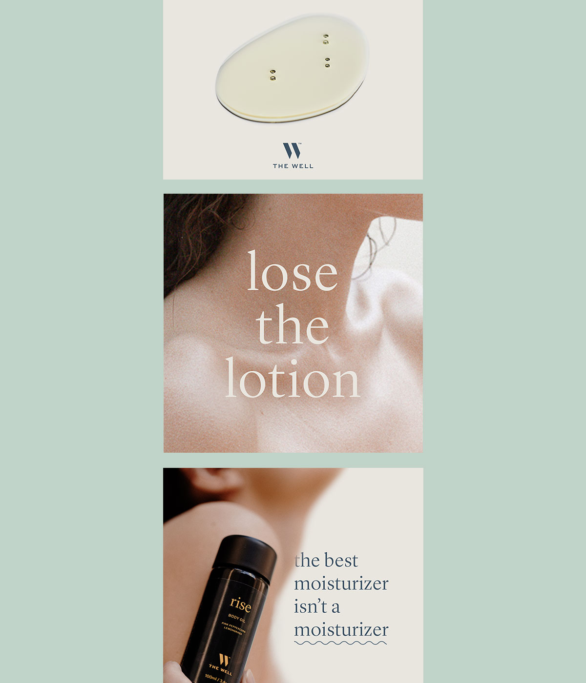 Another component of the campaign educated our audience about the role of wildcrafted essential oils, synthesized by a master bio-alchemist, in a regimen of self-care. For this campaign work, we set out to teach wellness-curious consumers that "the best moisturizer isn't a moisturizer at all." With airy, natural light photography and elegant type, we aimed to create ads that feel like their product: luxurious and simple.
